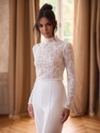 Produktdetails:- Mit langen Ärmeln- Ohne Ausschnitt, hochgeschlossen- Sorgfältig in der EU entworfen- Leicht kombiniert mit Röcken oder Hosen für Brautlooks