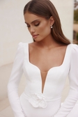 Endecke das elegante Brautkleid NIGRINA, perfekt für moderne Bräute in der Schweiz. Dieses Modell ist ein Secondhand Brautkleid und aktuell in unserer Herzig Brautmode Boutique in Brunnen (Gersauerstrasse 23, 6440 Brunnen, Schweiz) in der Grösse 38 zur Anprobe verfügbar. Das Brautkleid ist in neuwertigem Zustand – nur einmal getragen und professionell gereinigt. Besuche unsere Boutique in Brunnen oder vereinbare einen Termin zur persönlichen Anprobe. Wir beraten dich gerne individuell. Produktdetails:- Elegant figurbetont und schlicht - Design mit V-Ausschnitt- Mit langen Ärmeln- Sorgfältig in der EU entworfen